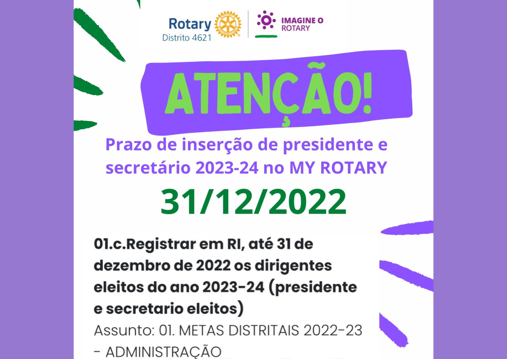 Adicionar dirigentes (presidente e secretário) 2023-24 até 31/12 é meta distrital.