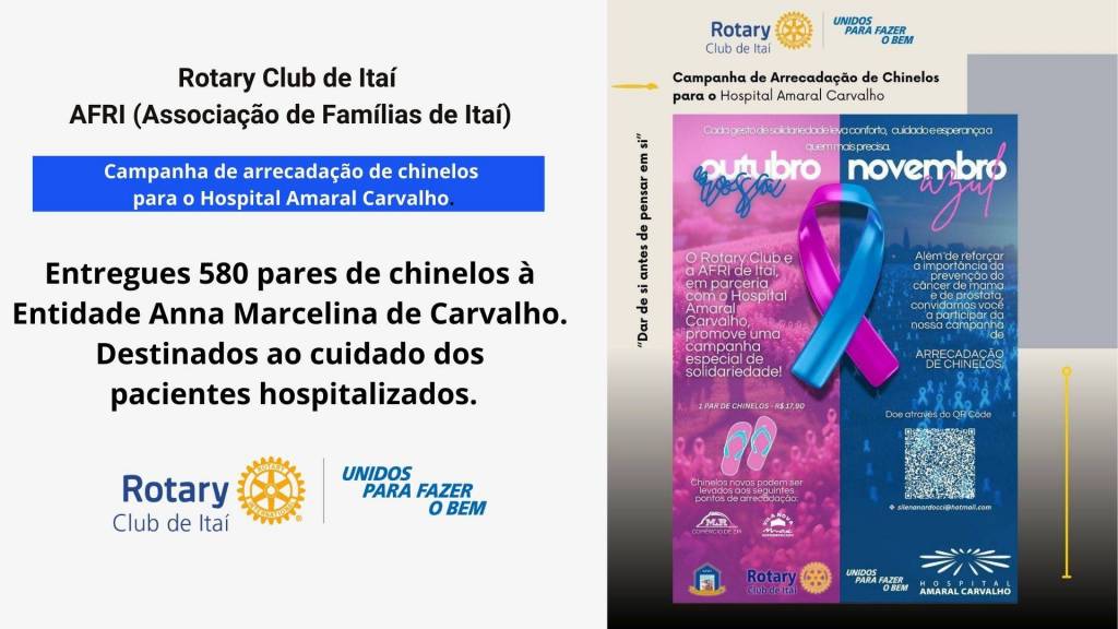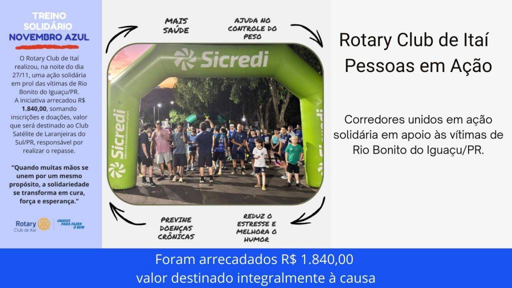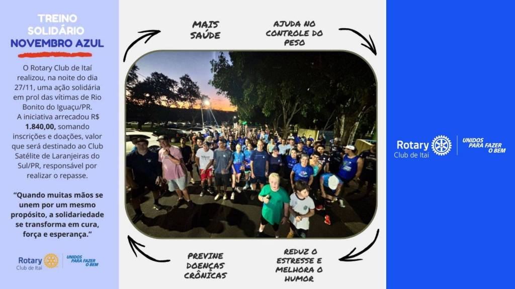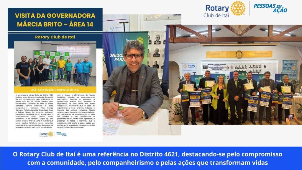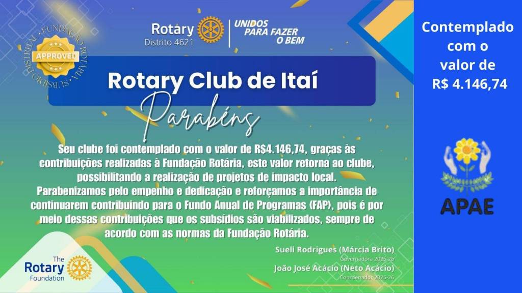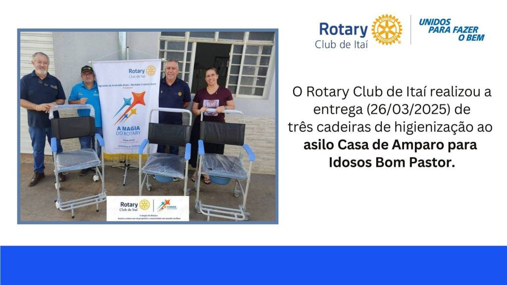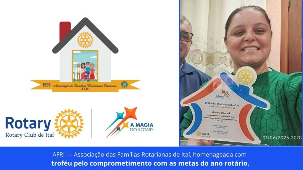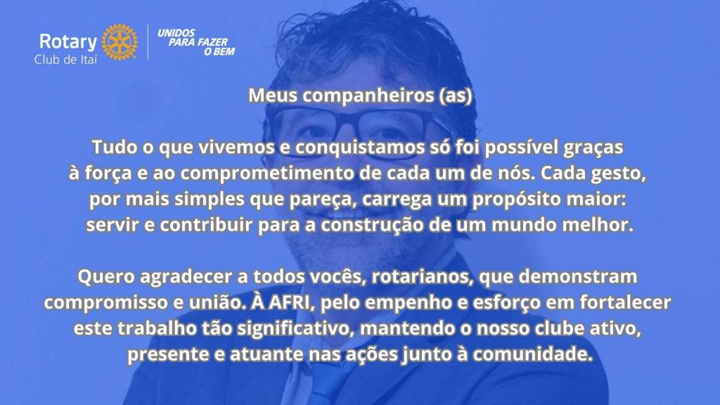 E também as ações do Ano Rotário 2025/2026, sob o lema “Unidos para Fazer o Bem”, na presidência de Rafael.